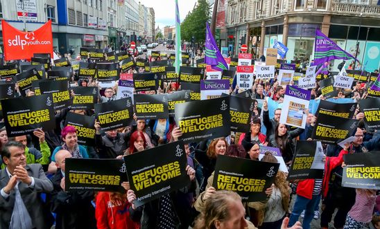 The demonstration comes just hours before world leaders meet in New York to discuss the international community’s response to the global refugee crisis. A year ago this week and after a public outcry following the death of toddler Alan Kurdi, David Cameron announced the UK would take in 20,000 Syrian refugees over five years from camps on the conflict-ridden country’s borders. Around 250 Syrians have been resettled in Northern Ireland under the scheme. The Syrian conflict alone has created almost 5 million refugees.